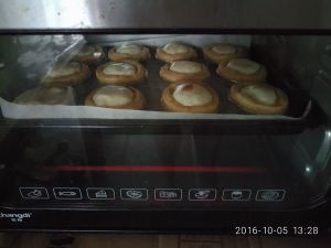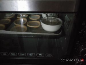 把挞水倒进挞皮里8分满,放烤箱中层,先160度30~40分钟,再转220度5分钟上色