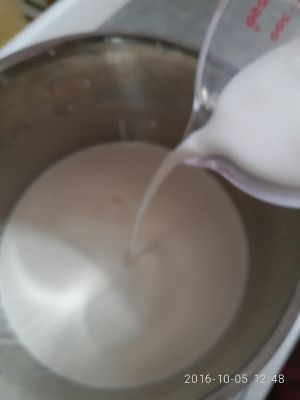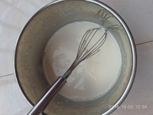 等牛奶冷却后加进淡奶油,搅拌均匀