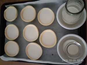 将纯奶 淡奶油 糖 蛋黄 面粉 蛋挞皮准备好