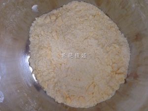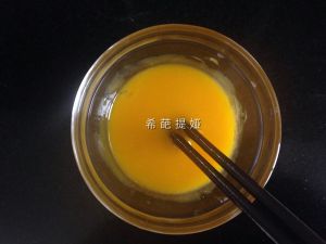 细砂糖和盐混合均匀,取一部分与蛋液混合搅拌均匀。