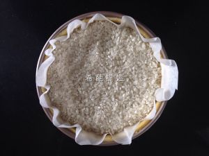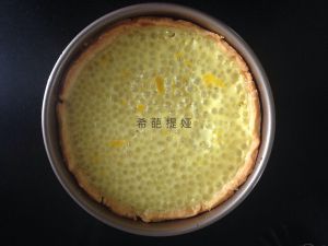 盖上烘焙纸,铺上米或芸豆之类的东西,防止挞皮在烘焙时膨胀,烤箱180度,10分钟。
