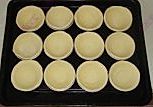 .两面沾面粉后放入蛋挞模内,用大拇指转圈捏成略高于蛋挞模的形状,松弛20分钟。