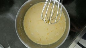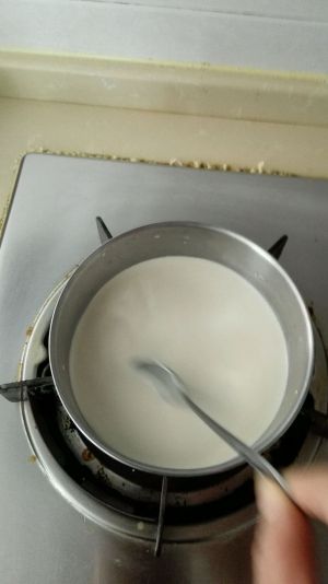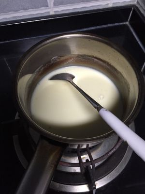 加入淡奶油隔水或者上煤气灶小火加热:
