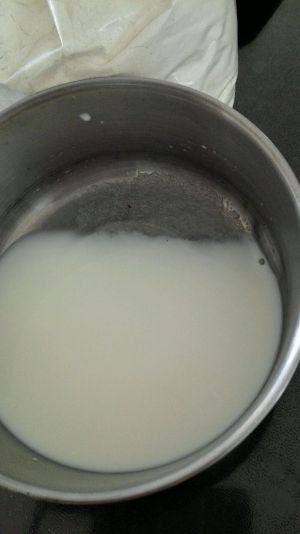 将牛奶。奶油。糖分混合搅拌均匀