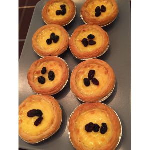 拿出来加几颗葡萄干,如果没有也无所谓,这样葡式蛋挞就做好了。