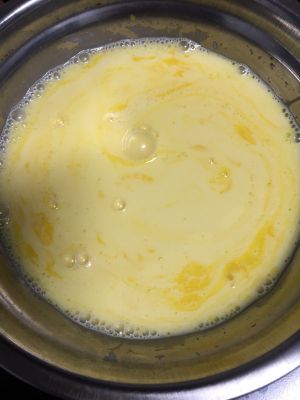 蛋挞皮室温解冻,放至手指摁一下软软的就可以了。等待解冻的时间可以做蛋液。
