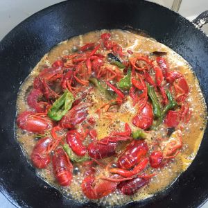 放入洗净的小龙虾翻炒均匀。