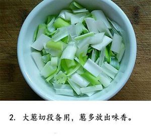 大葱切段备用,葱多放出味香。