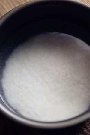 将大米洗干净,用水泡1-2小时。