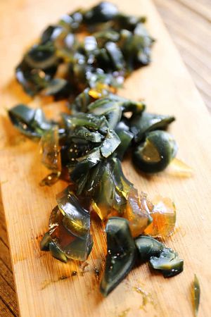 皮蛋切碎块。
