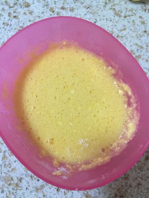 鸡蛋调散加白糖牛奶,继续搅拌均匀
