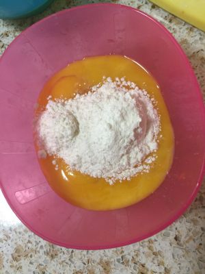 蛋黄和低筋面粉混合(如果没有低筋面粉用普通面粉也可以)