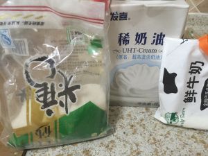 准备鸡蛋黄➕白糖打散,加入炼奶、淡奶油、牛奶搅拌均匀