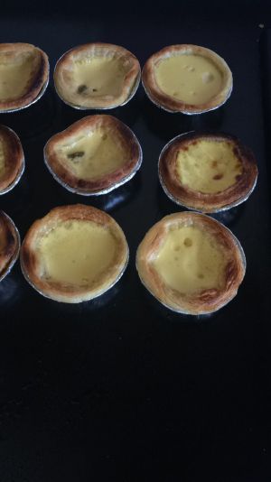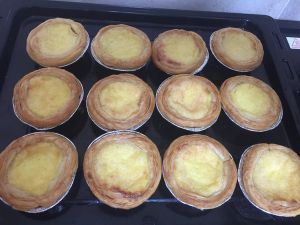 烤到挞皮酥脆、蛋挞夜凝固为止。