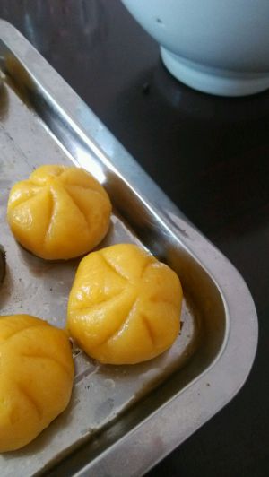 南瓜上锅蒸熟捣烂趁热加入糖 稍凉之后加入奶油奶酪或者淡奶油没有的可以不加 最后加入糯米粉揉成光滑软硬适中的面团