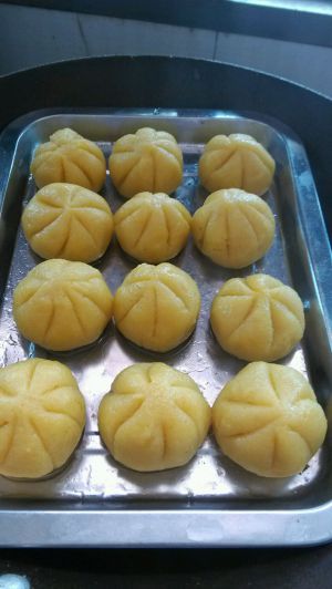 把红豆包进南瓜里压扁下锅火候不宜太大。