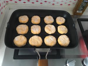 下盘加热3分钟,南瓜饼翻面再加热3分钟,合盖上下盘同时加热2分钟即可出锅。