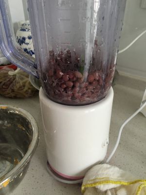 将提前煮好的红豆放入料理机,加适量的砂糖,打成糊状。(可以按自己的口味选择加或不加牛奶)