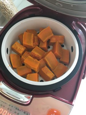 南瓜去皮去籽后上笼屉蒸7、8分钟。