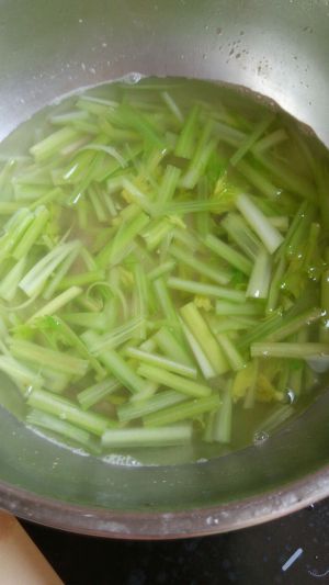 少许热油,放肉丁,七分熟时,放十三香,酱油,一葱花,小炒几下,放土豆丝小炒至八分熟,放芹菜炒熟