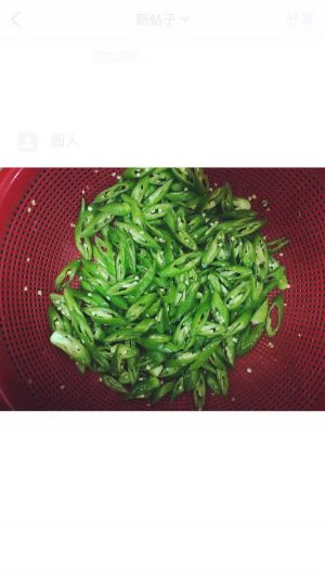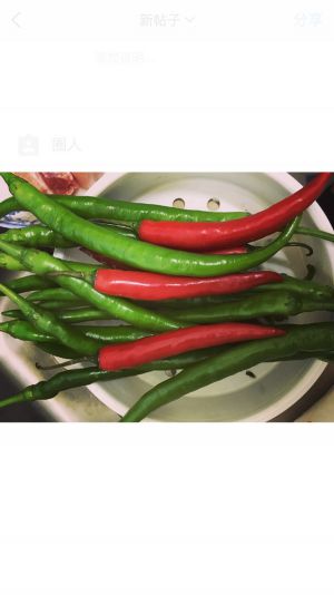 这是今天要用到的辣椒,一些青椒,和4根红椒来配色,这种辣椒比较辣一点,适合我们四川人的口味,如果怕辣可以买那种常用的青椒,把辣椒全部洗干净沥水