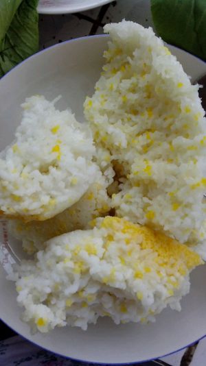 米饭是先蒸好的,蒸米饭的时候我加了一点玉米渣,感觉这样的饭更营养些。