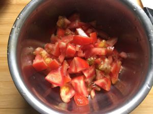 蕃茄划几条痕在热水里烫一下剥皮切丁备用