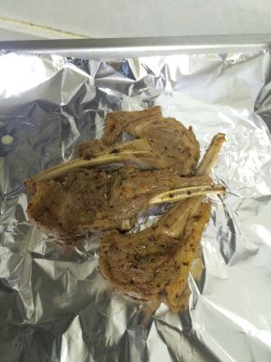 把羊排移至到烤架上,再烤5分钟中翻面后再考5分钟即可
