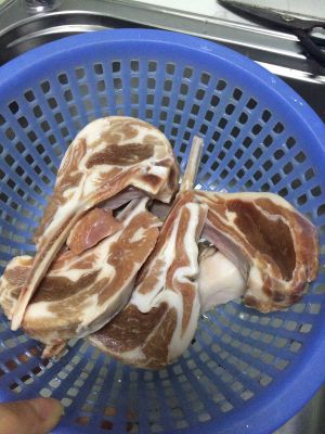 小羊排,用水浸泡,直至羊排的血水浸泡干净(整个过程至少要换三次水)。