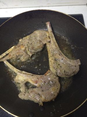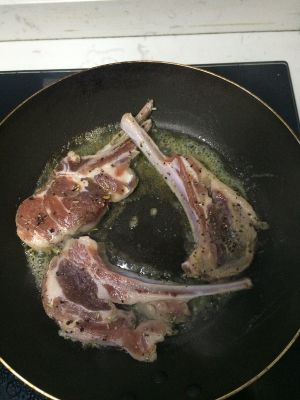 一小时后,将烤箱预热,180度待用。同时将20克黄油一分为二放入平底锅加热,我们要煎羊排了哦。