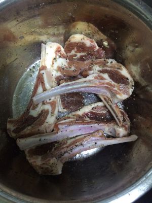4⃣️将所有调料混合均匀涂抹在羊排上,腌制1小时