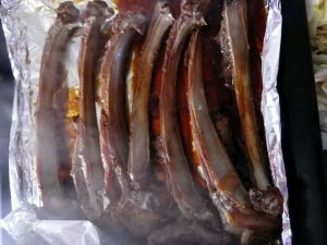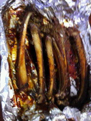 准备两袋大喜大烤肉酱,孜然味的,将烤肉酱全部倒进食品袋,混合均匀按摩片刻,将羊排食品袋放入冰箱冷藏室,过夜。早上起床后将袋子翻一下再冷藏到10点取出准备开烤,起晚了可以不用翻面