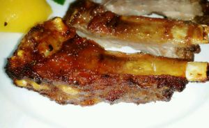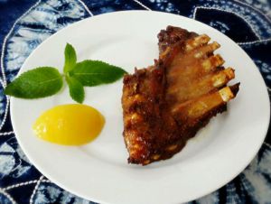 有孜然芝麻的可以薄撒一层,再次入烤箱,250℃上下火,5分钟,取出把羊排翻面,再用250℃上下火烤5分钟,使羊排表面更焦香一些