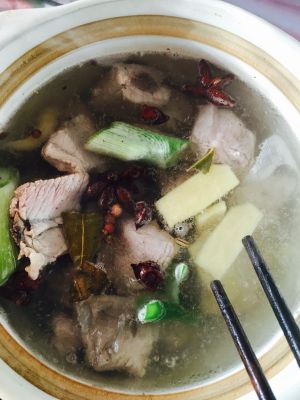 焯水5分钟左右 带着仙气的排骨好了 准备工作告一段落 要开始漫长的炖啊炖啊炖啊炖啊