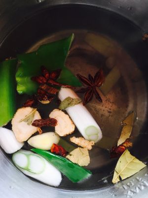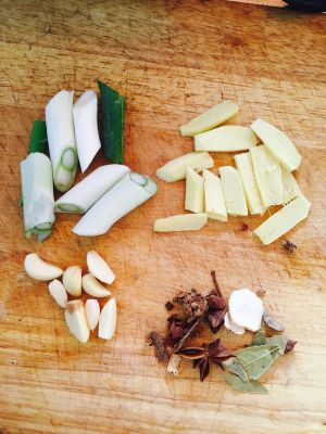 葱切段 姜切片 蒜去皮 八角香叶 备用