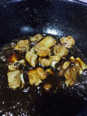小碗放入醋,生抽,料酒,调好,倒入排骨内,大火炒。加水末过排骨,烧开后开小火烧20分钟。大火收汁。