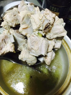 那个汤是开始煮肋排时候做的,大火时候就把玉米段儿胡萝卜块放进去,一直煮到关火,把做糖醋小排的那些排骨夹出去,汤里放盐和鸡精,就行了。有了玉米的汤特别鲜~