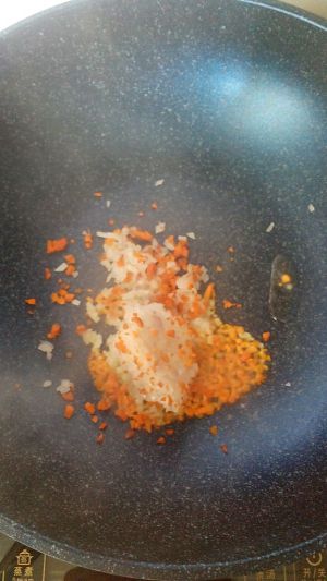 油热后加入洋葱,洋葱炒软后加入切碎的培根。