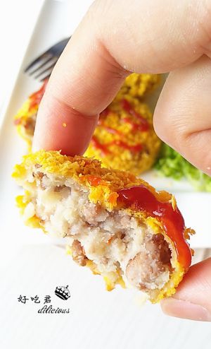 做完开吃!外面脆脆的里面混合着土豆和牛肉香香糯糯的超级棒~