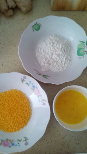 准备适量的面粉,两个鸡蛋打成鸡蛋液,还有事先做好的面包糠 顺序: 先把土豆泥弄成绿豆饼一样的形状,把形状压实;依次按照双面裹面粉、裹鸡蛋液,最后裹面包糠的顺序,把每一个饼都做好。
