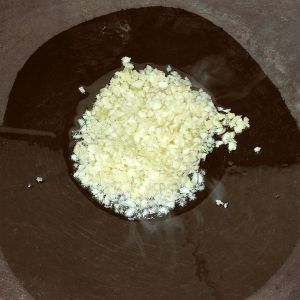 在锅内放油把蒜蓉爆香。