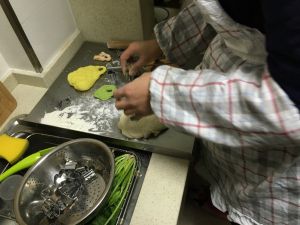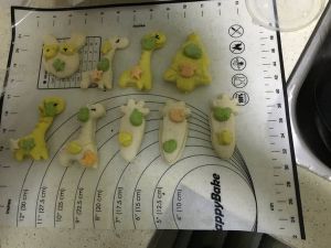 四份面团揉完后置于温暖处发酵至两倍大后取出揉搓排气。用擀面杖排气擀成1-2厘米厚的面团,用自己喜欢的磨具按压取出后组装。