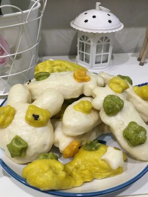 依次做完其它面团,铺盖,覆盖醒发20分钟后。开水上锅,大火蒸10分钟左右。出锅放凉。