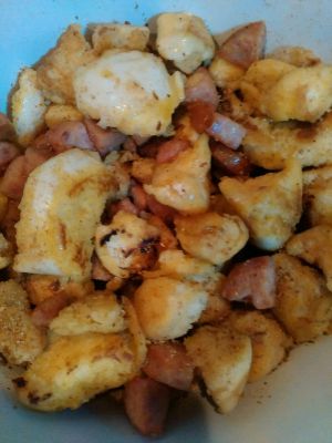 把热馒头掰成块,我这个太大了,小一点比较好。