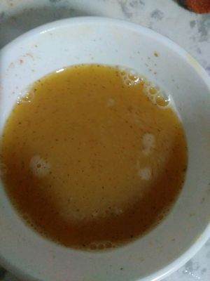 把鸡蛋打散,加入盐,五香粉和水拌匀。