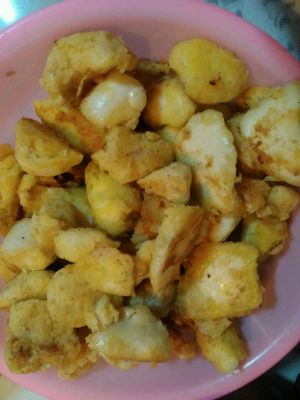 热锅倒油,把馒头裹满刚才弄好的蛋液放入锅中煎至金黄,盛出。