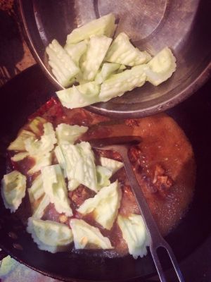 倒入苦瓜继续煮20分钟(苦瓜我喜欢吃软一点的,所以时间煮的比较久)这个时候汤汁基本上烧的快没了,再加入200毫升水