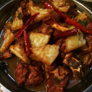 1:排骨用水煮10分钟,捞起来沥干,放一边待用。 2:锅加点油。把葱姜炒香,加入排骨翻炒至排骨金黄色后加入料酒,生抽翻炒。 3:加入刚煮排骨的汤水,不过排骨,干辣椒,八角,鸡粉,糖,陈皮,盖上锅盖煮10分钟后,倒入砂锅开小火慢炖15分钟。