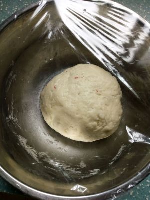 因为做的过程手上都是面,没有拍照。所以还是看文字吧。酵母用温水化开。我大概用了2克酵母,视你用的面粉量来定。酵母静置一会儿,待水变浑浊备用。