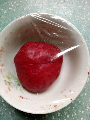 把碱面擀细,分别揉进两个面团里。大力排气。直到面团变得非常光滑。之后再把面团殇20分钟。让面再长一长。